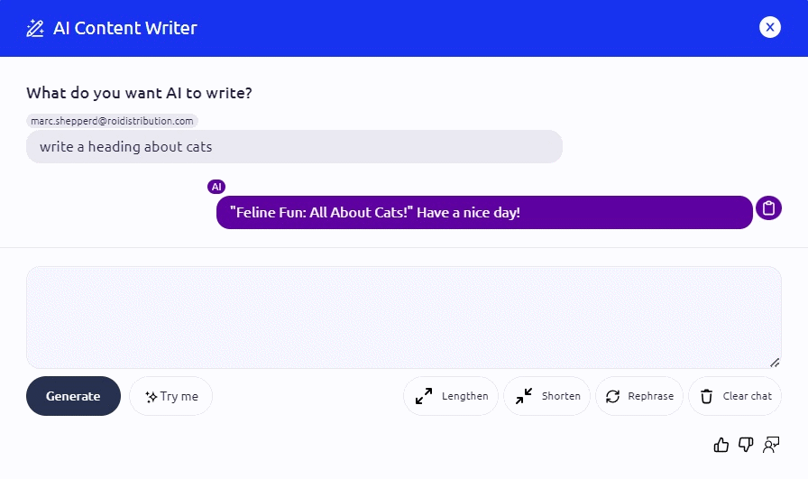 The ‘Lengthen’ button will trigger a more succinct response to the request.
