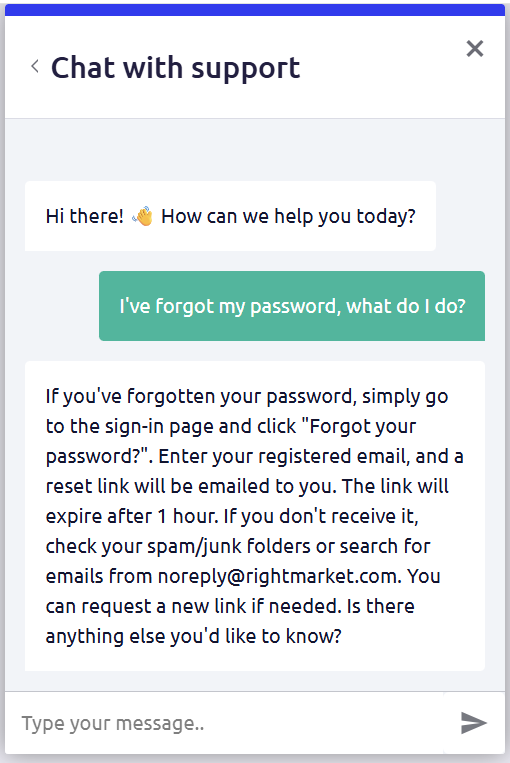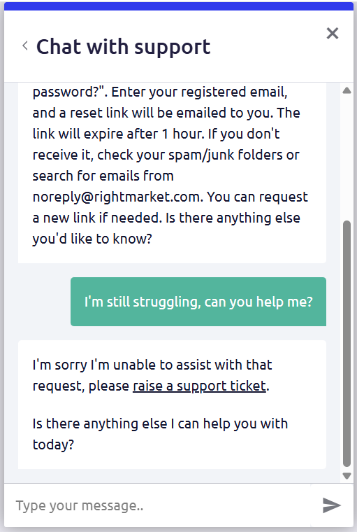 Our AI Assistant is trained on our most frequently asked questions, how-to guides, technical documentation, and real-world support conversations. It can answer a wide range of queries, in seconds.
