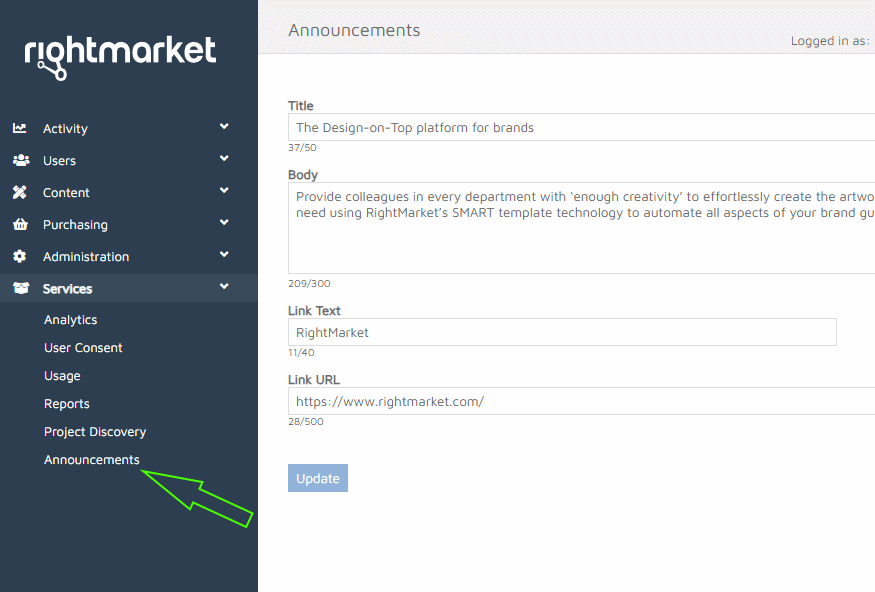 Note: all fields have character limits to deliberately keep announcements concise.