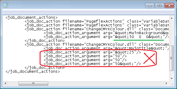 Instead of one argument having comma characters inside, there are four, damaged. This error makes the document fail when processed by the Pageflex Server and the true reason of the failure doesn’t even appear in the rendering log.