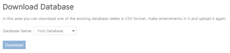 Previously uploaded databases can be downloaded in this section by selecting the database name from the dropdown list and clicking the download button.