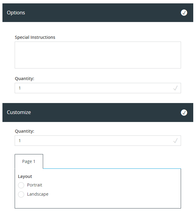 In the following example the ‘Quantity’ field value is copied from the Printing Options step to the Form Filling (Customize) step. The direction of copying can be configured in the relevant product meta field.