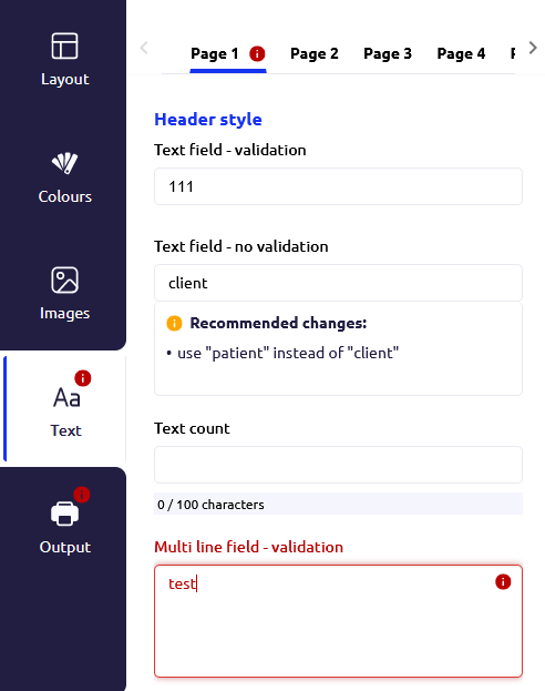 For the selected category, now both the Tone of Voice Assistant amber warning and red validation warning are present, the red warning is preferred.