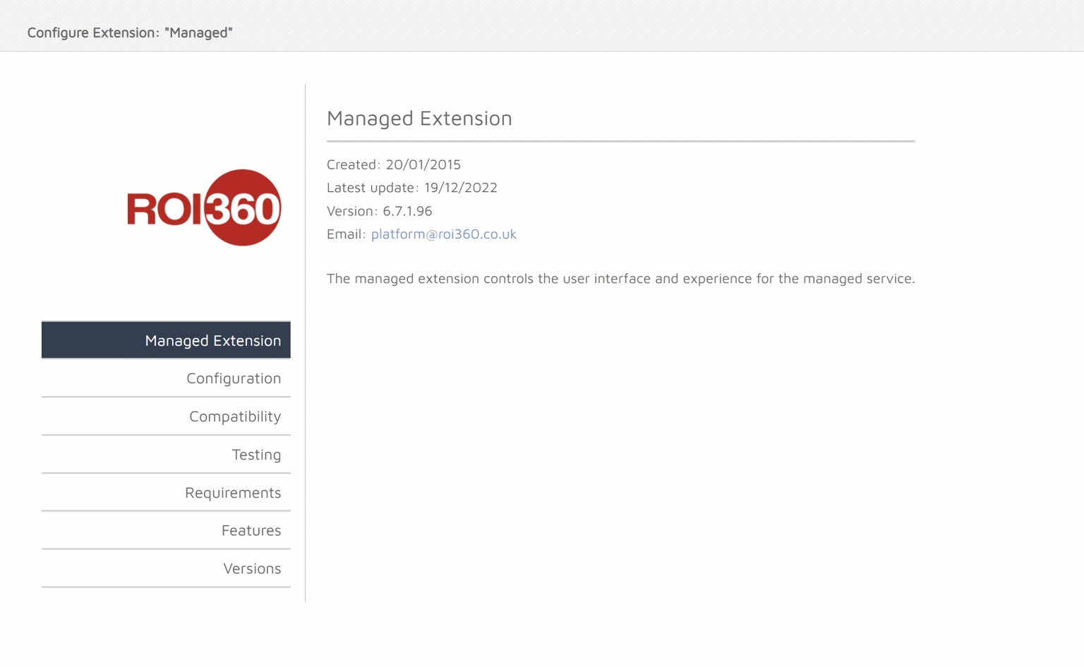 Within the extension, there is a Configuration page. This page contains the following options. The only option on this page that can be changed without prior approval from Product is “roi360 view”.