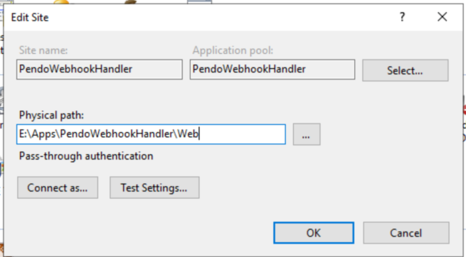 Recommended installation directory: "E:\Apps\PendoWebhookHandler\".