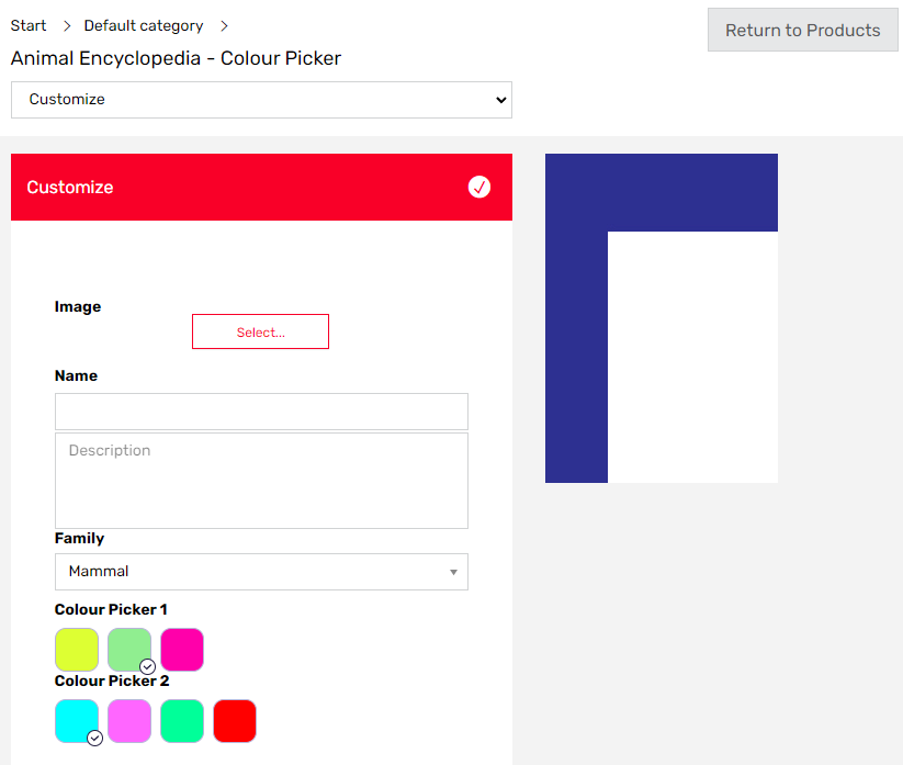 On the user site the Colour Pickers appear at the editing step.