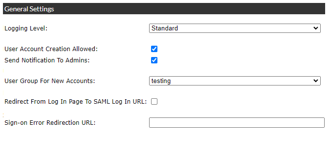 ‘Logging Level’ - select from ‘Standard’ or the more verbose ‘Debug’ modes.