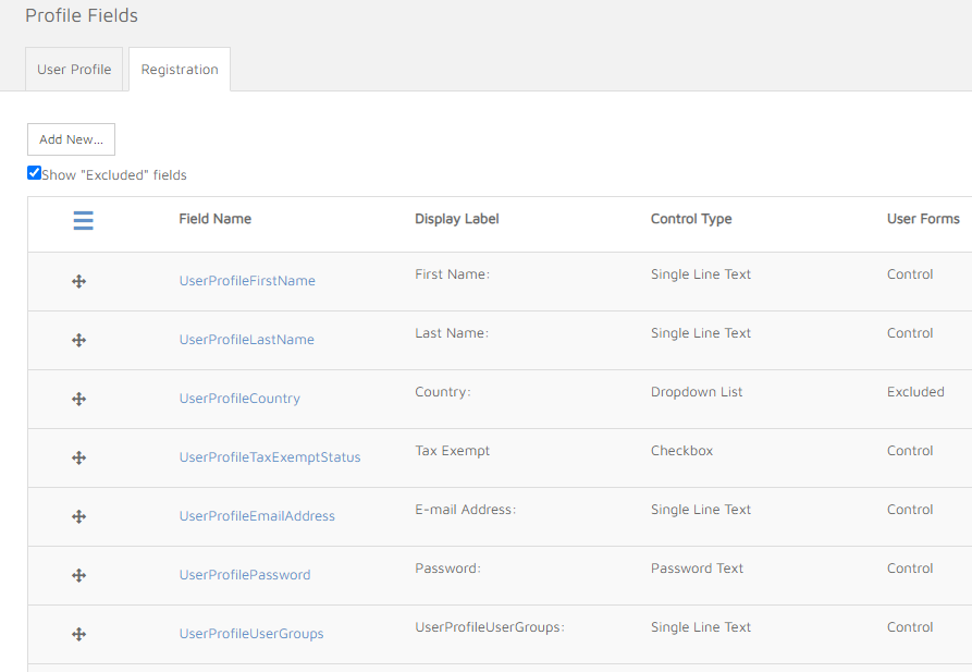 When the extension is running, only the following field types are supported in the registration form definition:
