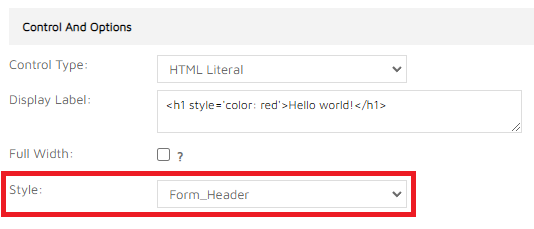 Style option is only supported for the HTML Literal control type. It can be used to create section headers in the login form:
