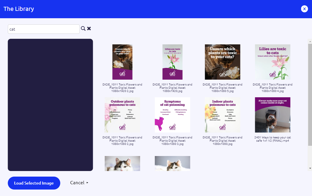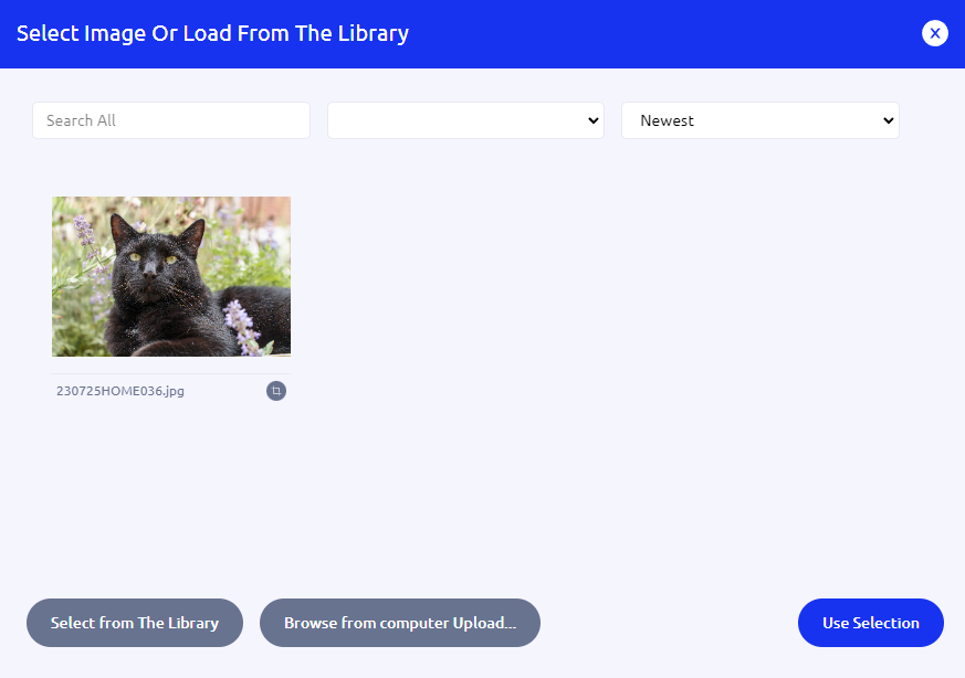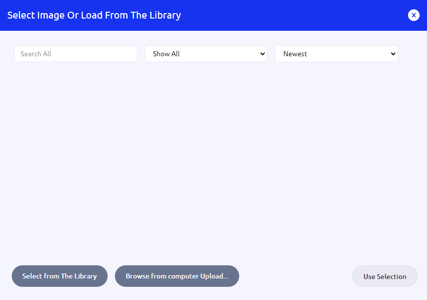 The modal popup now shows the content of global and user image libraries (depending on the deployment settings).